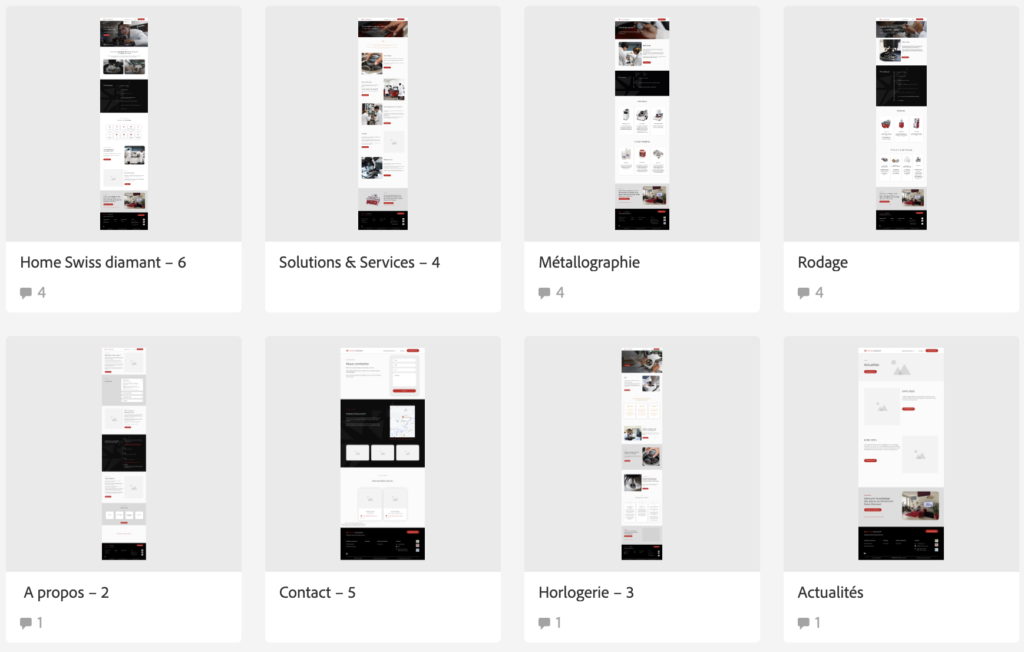 À l’issue de ce temps d’observation, j’ai commencé à travailler avec une agence en conseil digital, qui a mis à ma disposition un graphiste, un copywriter, des photographes et globalement tous les métiers qui participent à la conception d’un site Internet. Nous avons organisé plusieurs workshops, au cours desquels j’ai pu leur décrire ce que l’entreprise faisait et qui est était notre clientèle cible. Sur cette base, nous avons redéfinis ensemble la charte graphique, sur base des différentes inspirations que j’avais tirées de mes recherches sur les sites internet des concurrents de l’entreprise, ainsi que, au contraire, ce que nous ne voulions surtout pas reproduire au sein de l’industrie. Peu à peu le site internet a pris forme, au travers des wireframes successifs élaborés et de l’architecture graphique du site proposée par l’agence de conseils que nous avions mandatée. Ensuite, je me suis occupée de rédiger les premiers projets de textes pour le site, que nous avons retravaillé en collaboration avec le copywriter mis à notre disposition. Enfin, j’ai organisé des séances de photo-shooting dans le laboratoire d’essais techniques de notre partenaire fabricant, ainsi que dans les locaux de la société à Genève.